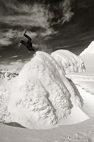 Die „One-Footer“ sind nur eine weitere Art seine Kreativität auszuleben. Manchmal muss man halt einfach mal die Pferde mit einem durchgehen lassen und was verrücktes machen. Aber ich denke „One-Footer“ sehen echt cool aus und mir machen sie einfach verdammt viel Spaß. Aber wartet mal ab, jetzt geht’s nämlich erst richtig los, ich habe große „One-Foot“-Pläne für die Zukunft: Auf jeden Fall wird es mehr One-Foot-Powder-Lines geben!