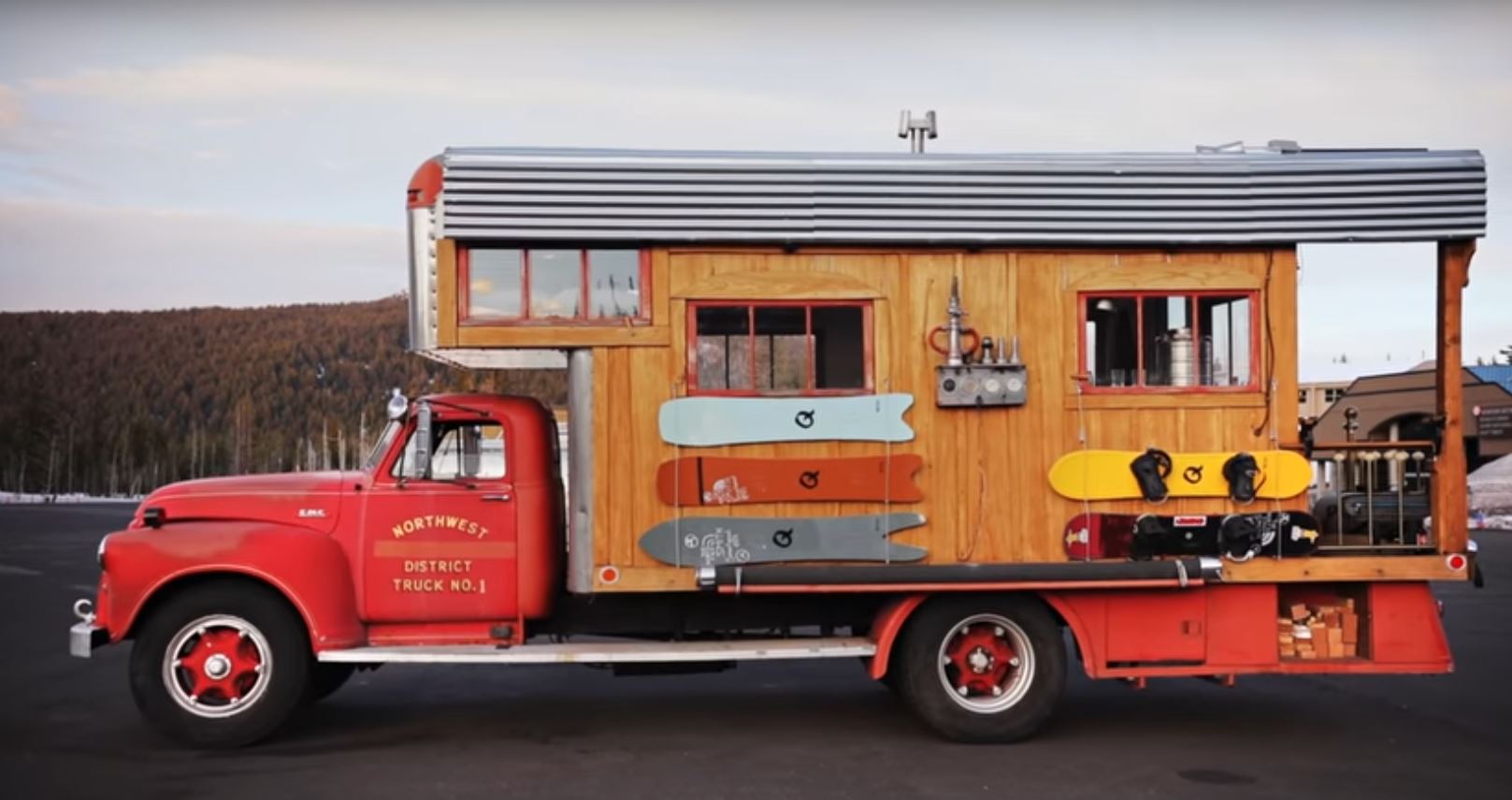 Austin Smith wandelte letzte Wintersaison seinen Firetruck in ein mobiles Tiny House um, mit dem er einige Wochen am Mt. Bachelor lebte.