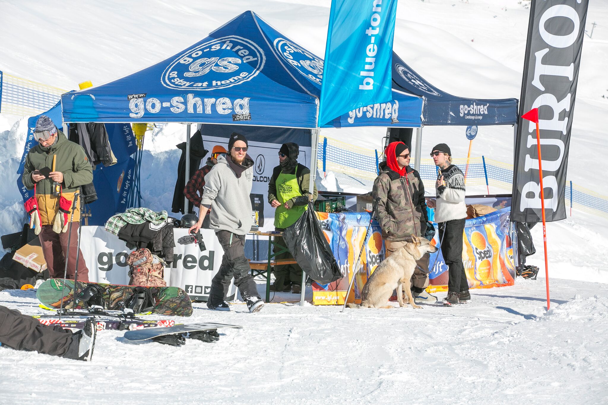 Am Freitagmorgen sind wir mit blauem Himmel und Sonnenschein im Gepäck angereist, um unseren Event Stuff zu liefern, das Terrain zu besichtigen und natürlich um den tollen Park zu shredden. Nach freundlichstem Empfang von der Crew an der Talstation der Komperdellbahn sind wir in den Park gefahren, um den Platz für unser Setup auszuwählen und die Details des Ablaufs für den morgigen Event zu besprechen. Da sowohl die Guerillia Shape Crew, als auch wir schon lange im Geschäft sind, hatten wir die Besprechung in kürzester Zeit erledigt und konnten noch den ganzen Nachmittag shredden.