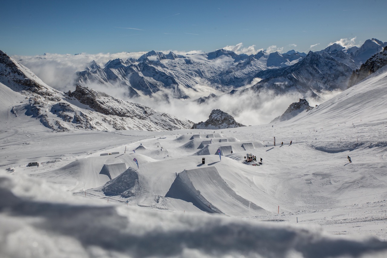 Wer am ersten Tag des Openings früh auf dem Hintertuxer Gletscher stand, konnte noch etwas Sonnenschein im perfekt geshapten Betterpark Hintertux ergattern. Viele bekannte Rider wie Werni Stock, Tom Tramnitz, Alex Walch und Fabian Fraidl waren bereits am Start und heizten sich gegenseitig beim Alarm Clock Battle ein.