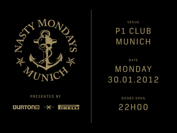 Anlässlich der Kollaboration von Burton und Pirelli für Herbst/Winter 2013 veranstalten beide Firmen während der ISPO eine gemeinsame Party im P1 Club in München. Burton und Pirelli bringen die bekannte Nasty Mondays DJ Crew von Barcelona nach München, natürlich an einem Montag, 30. Januar. Zum allerersten Mal wird das Münchner Publikum die Gelegenheit bekommen, Nasty Mondays für sich zu entdecken!