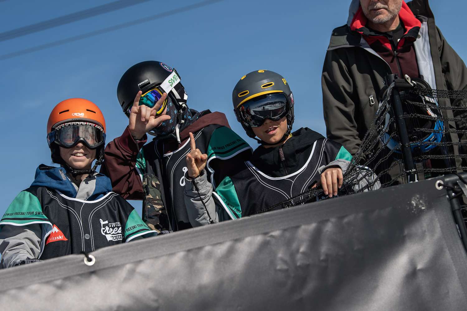 Zurück am Start der Pipe ist ständig was los. Farbenfroh wie ihre Outfits quirlen die Worte aus den Mündern des U9 Girls Quartetts – die Augen sind versteckt hinter fetten Goggles. Auf die Frage, wie viele Kurven sie durch die ewig lange Pipe gefahren sei, antwortet Lili: „ja alle“. Was für eine Frage! Lénnie und Lani finden die Superpipe „super“ und wollen später mal so fahren können wie ihr Vorbild, die ganz in schwarz gekleidete 13-jährige Siria, die gerade ihren Run mit einem hohen Air begonnen hat. Ella wiederum hat den Slopestyle lieber, “weil es da so viele Sachen hat”. Schiebt sich ein gleichgrosser Bub mit Goldhelm dazwischen und meint, ihm tauge der Banked am meisten. Der war eine Woche vorher, ebenfalls mit Mini-Shreddern am Start.