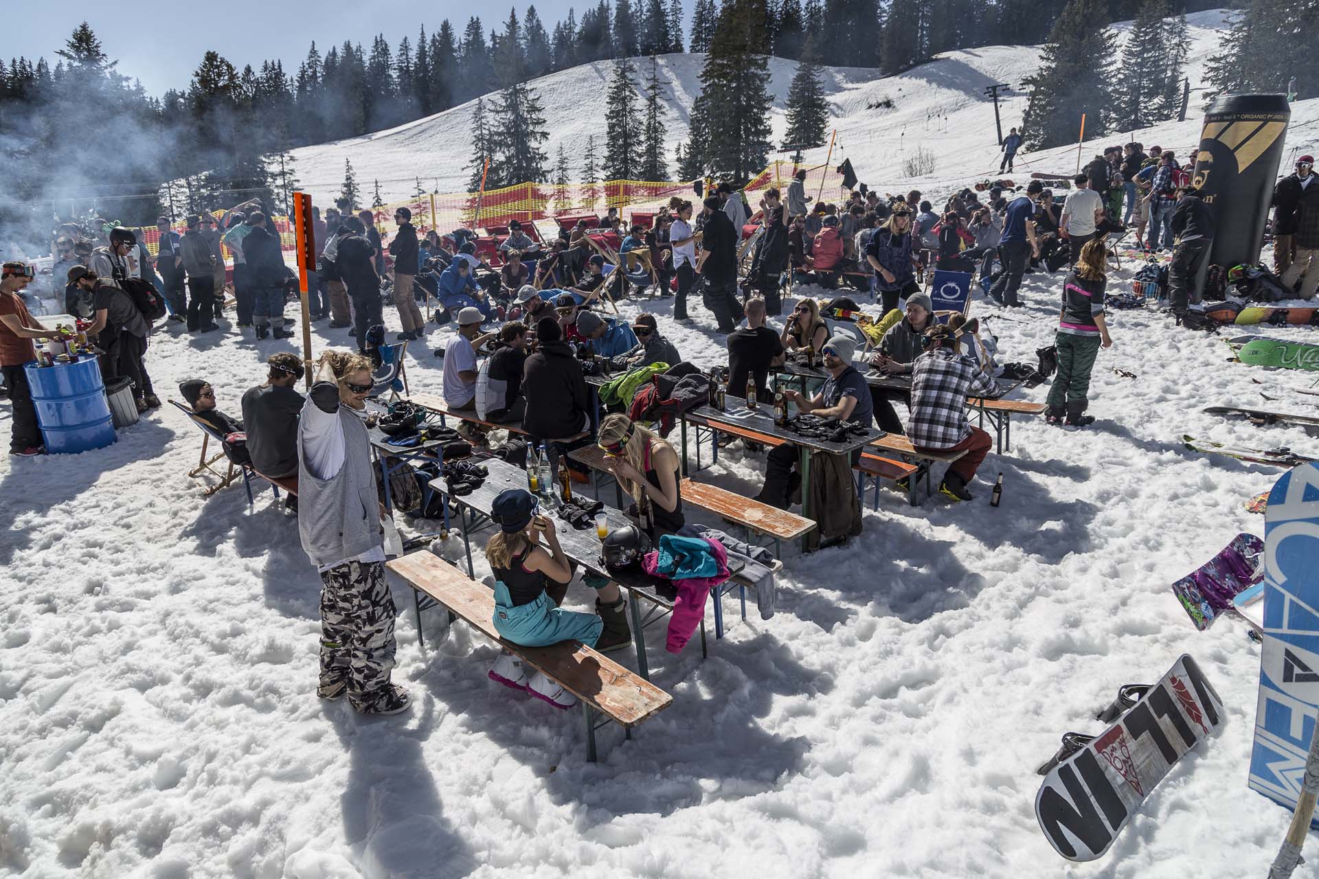 [Oben: Ausgelassene Stimmung im Snowpark Grasgehren. Foto: Anton Gruslak]
