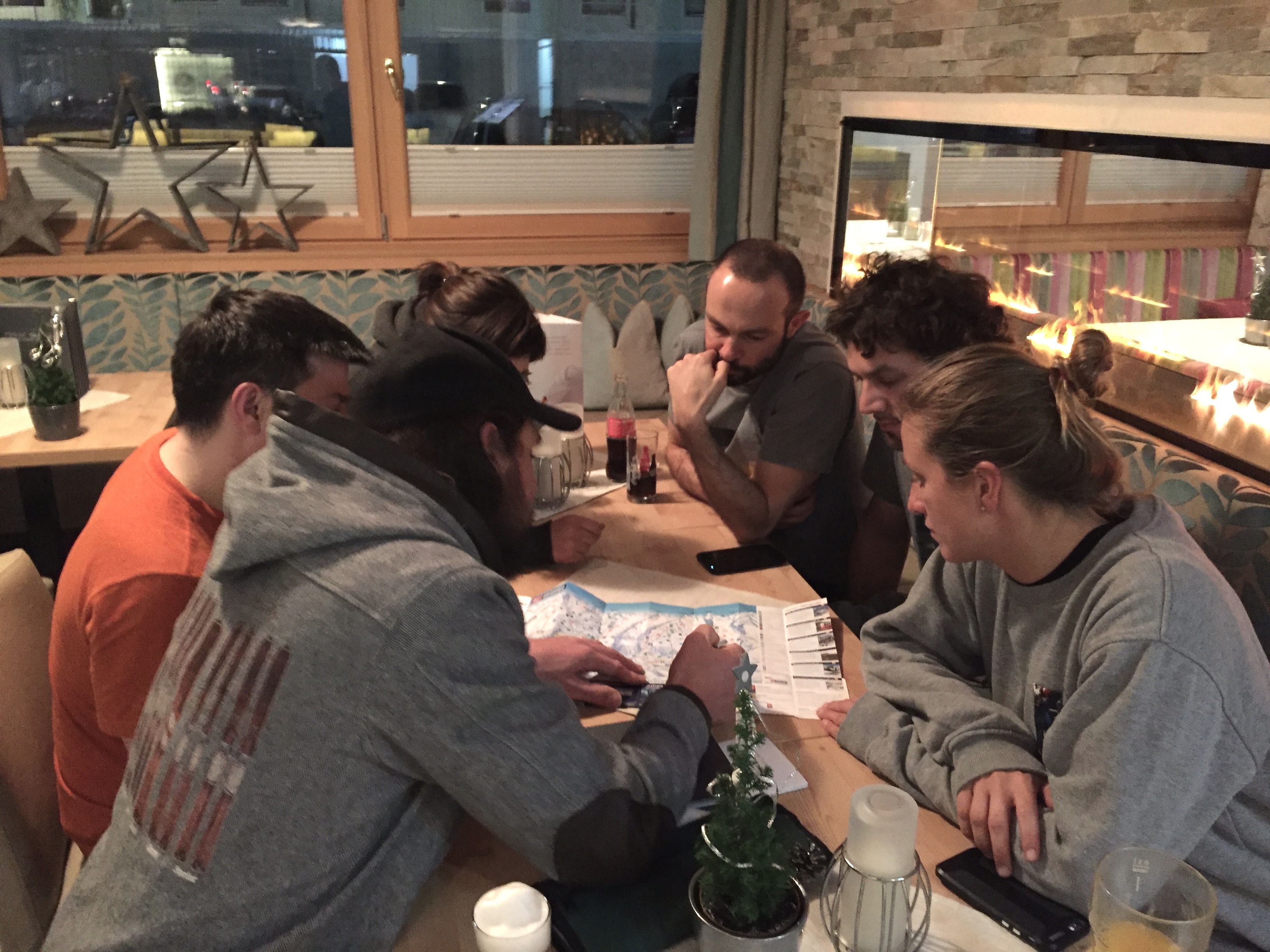 Eingecheckt im gemütlichen Apartment des Vier-Sterne Haus Gurgl, freuten sich die Teilnehmer auf ein ausgiebiges Abendessen mit anschließender Tourbesprechung mit Aline Bock und dem Bergführer Siggi von der Skischule Obergurgl Ötztal Tirol. Bei der Materialvergabe hatten die Camper die Möglichkeit, zwischen dem Völkl Snowboards Untrac und Xsight Splitboard zu wählen. Zum kostenlosen Test standen ebenfalls ABS Rucksäcke, LVS Geräte, Schaufeln und Sonden von Ortovox, Helme und Goggles von Marker bereit. Had Originals sponsorte für alle Teilnehmer Völkl Split & Freeride Camp Bandanas und Blue Tomato beschenkte alle mit Goodie Bags.