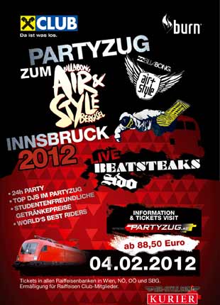 In wenigen Wochen geht mit dem Air & Style in Innsbruck die Mutter aller europäischen Big Air Contests über die Bühne. Wie es sich für einen vernünftigen Snowboardcontest gehört muss das natürlich gebührend gefeiert werden! Die Party beginnt aber nicht erst am Abend des 4. Februar im Innsbrucker Bergisel-Stadion, sondern schon einige Stunden früher am Bahnhof in Wien.