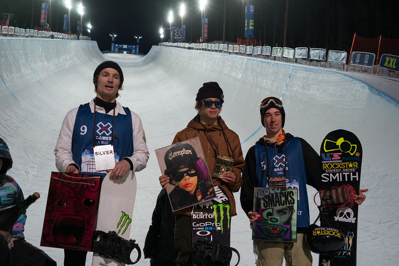 Ayumu Hirano konnte bei seinem zweiten Run mit dem einzigen 1440 der Nacht 94.66 Punkte holen, sein Signature Trick, der Crippler Japan, gefolgt von 1080s und einem Switch Double Flip to Fakie war mehr als genug, um ihn ganz oben auf’s Siegertreppchen zu befördern. Iouri Podlatchikov macht mit seinem ersten Run 88.00 Punkte und konnte die Silver Medaille dank eines Frontside 9 Tail, Backside Double Cork 1260 und Cab Double Cork 1080 holen. Chase Josey legte einen massiven Double Michalchuk, Frontside Double Cork 1080 und Switch Double Cripper hin, was ihm 85.66 Punkte und den dritten Platz sicherte.