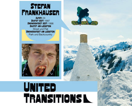 Von Stefan Fankhauser hatten wir bis zum Tag seiner Anreise in Flachauwinkl nur wenig gehört. Wir wussten, er kommt aus Tirol, und die Tatsache, dass er von Friedl gepusht wird, kann nur für seine Skate- und Snowboardskills sprechen. Der Österreicher, der eigentlich als Koch seinen Lebensunterhalt bestreitet, machte bis dato aber auch mehr in Skateboardmagazinen als in Snowboardheften auf sich aufmerksam. Seitdem aber Forum zu seinen Sponsoren zählt, dürfte sich das in Zukunft ändern.