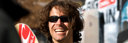 Dieser Berg war endlich auch nach dem Geschmack des amtierenden Big Mountain Pro Champs Jeremy Jones. Die von Tölderer gesetzte Messlatte toppte er sofort, indem er auf den ersten Metern gleich zwei imposante Cliffs droppte. Mit einem kräftigen Tritt aufs Gaspedal konnte man den Spass, den der 34-jährige hatte, an seiner Line am Schnee ablesen. Das i-Tüpfelchen setzte er dem Run mit mehreren massiven Airs über ein paar Roller auf.