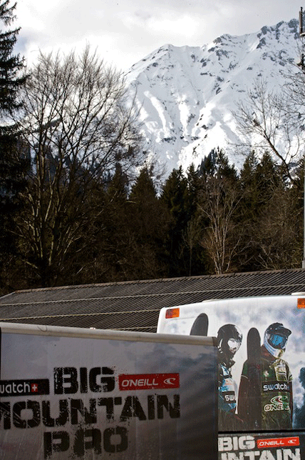 Tag 2 des O’Neill Big Mountain Pro begann für alle um 5.00 Uhr in der Früh. Das Tagesziel sollte die Nordkette bei Innsbruck sein. Nach zweistündiger Busfahrt, auf der die Fahrer noch die letzten Kräfte sammelten, ging es mit der Gondel auf die 1.905 Meter hoch gelegene Seegrube.