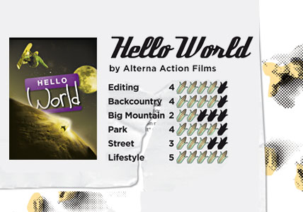 Alterna sagt „Hello World“ von Alaska bis nach Anatolien. Seit sechs Jahren produziert das Team um Produzent Carlo Wein nun schon Snowboard- Movies, deren Qualität von Jahr zu Jahr auf einem immer höher werdenden Level anzusiedeln ist. Fahrer wie Mikey Rencz, Tadej Valentan, Chris Dufficy oder Eero Niemela wachsen mit dem Projekt, das sich nun immer weiter in Richtung der Big Names unter den Movies zu bewegen scheint. Bekam man im letztjährigen Streifen „nur“ sattes Riding ohne Heli-Flüge und kontinentale Reiserouten auf die Augen, traut sich die Alterna Crew nun auch in Helikopter und lässt sich in Alaska sowie Vorderasien blicken. Zeitgleich steht der Fahrer-Level in „Hello World“ diesem Prozess in keinster Weise nach. Bereits nach dem ersten Part von Benji Ritchie, der zu Sounds von Trevor „Trouble“ Andrew springt und sprayt, bis die Schwarte kracht, werdet ihr eurer Mattscheibe gegenüber 30 Minuten lang gefügig sein. Same sound different style but still good: Mikey Rencz knüpft nahtlos an Benjis Backcountry-Skills an und hittet Pillows und Kicker im Akkord. Vom Backcountry zum Bosporus: Der Ausflug nach Istanbul mit Wasserpfeife, Tee, Studentenpartys und Shredding in den Bergen Anatoliens wirkt wie die Ruhe vor dem Sturm. Und tatsächlich: Die Big Mountains von Alaska sind die nächste Spielwiese der Crew. Besonders David Short liefert hier mit seiner Helm-Cam atemberaubende Bilder und lässt euch bei seinen abenteuerlichen Runs hautnah mit dabei sein– nichts für zarte Gemüter! Weiter geht es mit einem Mix aus Park, Backcountry und Street, wo unter anderem die Deutsche Vera Janssen mit schönen Shots vertreten ist. Verlassene Häuser und schaurige Hinterhöfe werden hier kurzerhand zu Jib-Spielwiesen ernannt und so sehen sich die Einwohner Sarajevos mit dem ein oder anderen Snowboarder konfrontiert, der ohne Vorwarnung aus einem dunklen Fenster einer leer stehenden Ruine droppt. Auch das nicht mehr bewohnte Hotel der Olympischen Winterspiele von 1984 bleibt von Wallrides und Drops nicht verschont. Die Crew beweist Kreativität und zeigt, dass die Welt mit einem Brett unter den Füssen und ein wenig Schnee auf der Strasse – oder nach Belieben auf Häuserdächern – zu einem grenzenlosen Spielplatz werden kann. Obwohl das Niveau hier verdammt hoch ist, schaffen die Filmemacher das, was bei den meisten grossen Produktionen verloren geht: Snowboarden greifbar zu machen für jedermann. Ungeachtet dessen, ob man mit seinem Können ganz am Anfang steht oder bereits den ein oder anderen grossen Spin gestickt hat – Snowboarden ist, was du draus machst! Der Last Part gehört Jesmond Dubeau und ab hier herrscht akuter Platzmangel für weitere Buchstaben. Das passt allerdings ganz gut, denn der Ausdruck „ohne Worte“ trifft bei diesem Part sowieso den Nagel auf den Kopf!