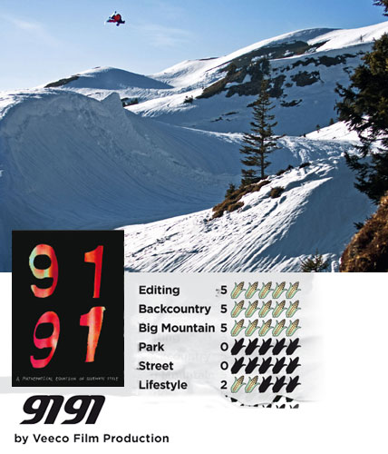 Mit „9191“ tritt nun auch Gigi Rüf in den kleinen erlesenen Kreis derjenigen Shredder, die behaupten können, einen eigenen Film über sich gedreht zu haben. Mit Jake Price stellte Volcom nach dem Motto „eins bezahlen, drei bekommen“ Gigi einen eigenen Filmer zur Seite, der ihn einen Winter lang auf all seinen Trips durch Österreich, die Schweiz, Neuseeland, Chile, Alaska und in die USA nach Jackson Hole begleitete. Denn Jake führte neben dem Filmen Regie und machte auch noch den Schnitt. Das Ergebnis seiner Arbeit ist eine auf Film gebannte Lobhuldigung an das Riding des 29-jäh rigen Vorarlbergers und vor allem an dessen einzigartigen Style. Aber nicht nur Gigi, sondern auch der Rest des Fahrer-Line-ups, das mit hochkarätigen Namen wie unter anderem Terje Håkonsen, Nicolas Müller, Bryan Iguchi und Jake Blauvelt gespickt ist, steht für den Style schlechthin. So sick die Na men bzw. die Fahrer auch sein mögen, sie spielen in „9191“ trotzdem nur eine Nebenrolle. Wir haben zwar keine Stoppuhr und keinen Taschenrechner benutzt, schätzen aber, dass mehr als 75 Prozent der Shots von Gigi sind. Zu Beginn des Films heisst es mit der ersten Kameraeinstellung wortwörtlich „Drop-in“, denn Gigi steht auf einem Grat zum Drop-in in einen Spine Run, auf den sogar Big-Mountain-Rider wie Jeremy Jones neidisch wären. Mit diversen High Speed Spine Runs wird der Zuschauer dann von 0 auf 100 in den Film katapultiert, bevor im Intro, wenn man es so nennen kann, ein Hochgeschwindigkeits-Rückblick auf Gigis komplette Snowboard-Karriere in Form von einigen Highlights aus so circa jedem Snowboard-Movie, in dem er je mitgespielt hat, zu sehen ist. Da darf natürlich auch die Mega-Powder-Arschbombe aus „Futureproof“ nicht fehlen. Der Rest des Films ist ein gelungener Mix aus gestochen scharfen HDAufnahmen, 16-Millimeter-Film und Super 8. Durch die leicht krisseligen Aufnahmen des Super-8-Films bekommt „9191“ seinen ganz eigenen, künstlerischen und vor allem mystischen Charakter. Dieser erinnert stark an den 1999 erschienenen „Faktor Håkonsen“, ist aber in seiner Art kaum mit anderen Snowboard-Filmen zu vergleichen. Was dazu natürlich bei trägt, ist der eigens für den Film produzierte Soundtrack des Künstlers Baron. An manchen Stellen vielleicht etwas gewöhnungsbedürftig, da man die Songs in keine Sparte einordnen kann, unterstreicht die Musik aber die Stimmung der Aufnahmen und ist zu 100 Prozent auf den Schnitt des Films abgestimmt bzw. umgekehrt der Schnitt auf die Musik. Zusammenfassend kann man sagen, dass „9191“ Big-Mountain-Riding und Backcountry-Free style mustergültig vereinigt, indem die Rider in Perfektion zeigen, wie man natürlichen Obstacles und dem gegebenen Terrain seinen Freestyle-Stempel aufdrückt. Neben Gigi Rüfs und Nicolas Müllers Backside Airs, die sowieso ihresgleichen suchen, laden Bilder von Parallel-Powder-Runs von Jake Blauvelt und Gigi zum Träumen ein. Hat man sich dann ganz an den Stil des Films gewöhnt und fängt gerade richtig an zu geniessen, wird man leider schnell wieder aus den weissen Träumen gerissen. Denn genauso rasant, wie der Film anfing, so abrupt ist er leider auch schon wieder zu Ende.
