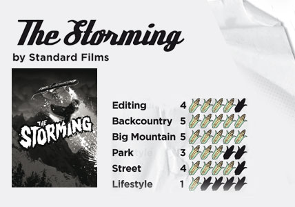 Auch dieses Jahr kommt man absolut nicht an Standard Films vorbei, wenn man einen verdammt guten Snowboard-Movie sehen will. „The Storming“ gehört definitiv zu den Top Three im Winter 2010/11. Fahrerauswahl, Tricks, die Mischung von Rails, Park und Backcountry sowie die gute Musikauswahl passen zusammen wie die Faust und das Auge. Und die wenig vorhandenen den Film aufl ockernden Lifestyle-Shots werden durch das verdammt gute Editing, das perfekt zur Musik und den Tricks passt, kompensiert. „The Storming“ wird auch euch im Sturm erobern! (lb)