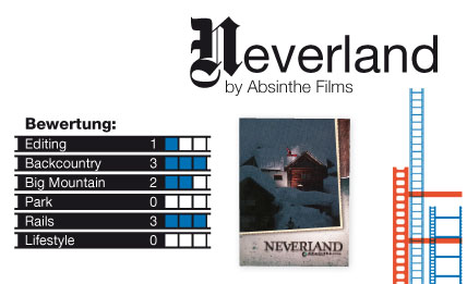 Fazit: Obwohl „Neverland“ mit Snowboard-Action der Extraklasse voll gepackt ist und das Lineup der Fahrer wohl das beste ist, das es in diesem Jahr auf DVD zu sehen gibt, lässt der Film an manchen Stellen Wünsche offen. Nach einem Part mit Nicolas Müller zu Beginn, der den Spass am Snowboarden nicht besser rüberbringen könnte, gibt es einige Abschnitte des Films, die ein wenig langatmig wirken, was an der nicht immer 100-prozentig passenden Musik liegt. Dazu stellt man sich die Frage, warum nur Travis ein Intro bekommt und für Abwechslung sorgende Lifestyle-Shots fast ganz fehlen. Filmtechnisch und actionmässig hat Absinthe aber wie in jedem Jahr einen Film geliefert, den man einfach gesehen haben muss, um überhaupt mitreden zu dürfen.