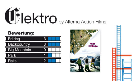 Fazit: Allein schon die Option, sich „Elektro“ für nur 3,99 Euro als Video-on-Demand anschauen zu können, macht den Streifen zum vorwinterlichen Pflichtprogramm. In der jährlichen Flut von Snowboard-Filmen schwimmt „Elektro“ ganz oben mit und schafft es sogar, so manch grosse Produktion durch die guten HD-Aufnahmen unter Wasser zu drücken. „Elektro“ wird wahrscheinlich nicht in den All Time Top Ten der Snowboard-Filme landen, ist aber ein Film, den man in Winter 2009/’10 mehr als einmal in den DVD Player schiebt.