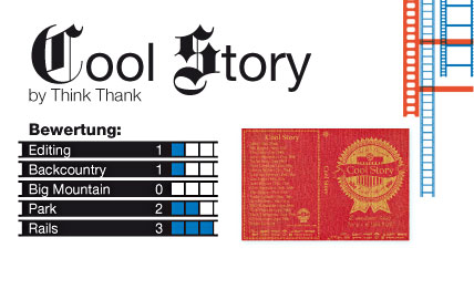 Über den Film: Klar gibt es Snowboard-Filme mit Produktionsbudgets im sechsstelligen Bereich. Die Fahrer müssen sich um nichts kümmern, alles ist perfekt durchorganisiert und läuft wie am Schnürchen. Viele der Think-Thank-Fahrer hingegen bekommen von ihren Sponsoren gerade mal den Stuff, den sie selbst verbrauchen. Natürlich macht das die Produktion eines wirklich guten Snowboard-Films nicht einfacher, aber aus der Not kann man ja bekanntlich auch eine Tugend machen. Ohne Geld gibt es keine Lifttickets, keine Helis und kein überteuertes Equipment; dementsprechend wird in „Cool Story“ überwiegend gejibbt und gebonkt. Ganz egal wie sketchy der Spot und wie bekloppt, banal oder unmöglich der Trick eigentlich ist, hier wird mitgenommen, was nur mitgenommen werden kann. Es wird gespielt und experimentiert, was das Zeug hält – und das zahlt sich aus: Ben Bogart ist zwar chronisch pleite, hat aber eine ausgeprägte Schwäche für verrückte Jib-Tricks wie kaum ein Zweiter. Tim Eddy darf sich schon jetzt mit dem soeben erfundenen Titel Master of Lip Tricks schmücken. Austin Hikonara zeigt Board-Kontrolle und Ideenreichtum, was Bonks angeht. Johnny Miller hört nicht nur gerne Metal, sondern ist auch meistens darauf unterwegs: Ganz egal wie viele Ecken, Kinks oder Kurven ein Rail hat, „geht nicht“ gibt’s nicht bei Miller. Gus Engle fährt am liebsten, ohne sich die Boots in die Bindungen zu strappen, und kann deshalb Tricks wie Fs Big Spins und Varial Kickflips, an denen sich andere schon auf dem Skateboard die Zähne ausbeissen. Sam Hulbert hat letzten Winter nicht nur den Grand Prix of Snowboarding gewonnen, sondern auch einen richtig schönen Frontside 1080° vor den Think-Thank-Kameras abgeliefert – einer der leider nur wenigen Powder-Shots in diesem Film, mal abgesehen von Mark Thompsons Footage: Frontside 900°, Switch Backside 900° und Double Inverted 900° heben das Powder-Level deutlich an. Der letzte Part geht an Chris Larson. Chris ist ein Gangster mit frisch erworbenem High-School-Abschluss und minderjährigen Groupies. Quasi der lebende Beweis dafür, dass man mit Frontside 270° to Switch Frontside Boardslides bessere Chancen bei der Damenwelt hat. Von „Cool Story“ dürfte jedenfalls nicht nur die Damenwelt, sondern auch ein Grossteil der männlichen Zuschauer begeistert sein. (fk)