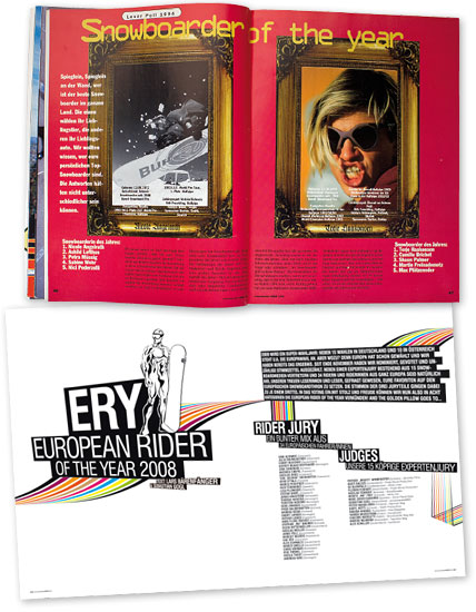 Schon früh kam in den Hallen des MBM der Entschluss auf, dass es nicht nur im Film- und Musik-Business, sondern auch beim Snowboarden Awards geben sollte. Besondere Leistung, Engagement und Kreativität sollten anerkannt werden. Im November 1994 war es dann so weit: Die Auszählung der unglaublichen Mengen an Leserstimmen war geschafft, der Snowboarder und die Snowboarderin des Jahres standen fest. Nicole Angelrath und der gerade mal 20 Jahre alte Terje Håkonsen kletterten auf den eisigen Thron der Snowboard-Welt und blickten als erste Snowboarder of the Year auf die Konkurrenz hinab.