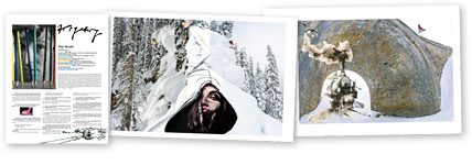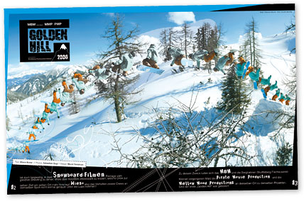 Die „Gallery“ ist seit Bestehen des MBM das Herzstück des Magazins. Dementsprechend wichtig ist es, sich immer wieder etwas Neues einfallen zu lassen, um sie möglichst attraktiv zu gestalten. Fotos, die es in die „Gallery“ schaffen, sind ausdrucksstark und zumeist ein gemeinschaftliches Kunstwerk von Fotograf und Fahrer. Warum also nicht verschiedene Kunstformen zusammenführen und ineinander verschmelzen lassen? Im Oktober 2006 war es so weit, das Projekt „Art Gallery“ wurde geboren. Die Idee dahinter war, dass Künstler aus aller Welt mit einigen wenigen Vorgaben die „Gallery“ nach ihren Vorstellungen gestalteten. Den Anfang machte die argentinische Künstlerin Caro Chinaski. Die Kommunikation zwischen Künstlerin und MBM gestaltete sich schwierig, da wir der spanischen Sprache und Caro der englischen nicht wirklich mächtig waren. Das Ergebnis zeigte, dass Kunst eine eigene Sprache besitzt, die es schafft, über alle Barrieren hinwegzugehen und ihren eigenen Weg zu finden. In den folgenden Ausgaben folgten viele weitere Künstler/-innen. Alle brachten ihren ganz eigenen Stil mit ein, unterstrichen durch ihre Kunst, was für sie Snowboarden bedeutet und was sie damit verbindet. Ein Jahr später, im Oktober 2007, unterzog sich das MBM einem Facelift. Im Gegensatz zu Hollywood-Diven, die der Kleidergrösse 0 entgegenhungern, legte das MBM ein paar Pfunde zu, was der Qualität und Dicke des Papiers zugute kam. Das Heft wuchs zudem um einen Zentimeter in die Höhe, doch das Schönste war, dass Cover und „Gallery“ fortan in neuem Glanz erstrahlten. Das Projekt „Art Gallery“ wurde fortgesetzt, zum ersten Mal in der Geschichte des Magazins aber auf hochglanzlackiertem Papier! Die ehrenvolle Aufgabe, diese Premiere künstlerisch zu gestalten, hatte die in Tschechien geborene Petra Dufkova. Die „Art Gallery“ konnte sich aber gegenüber der lackierten Gallery nicht durchsetzen und so blieb es bei der einmaligen Kombination im Oktober 2007. Die lackierten Fotos in der „Gallery“ sind aber nach wie vor das Herz- und Schmuckstück des MBM geblieben.