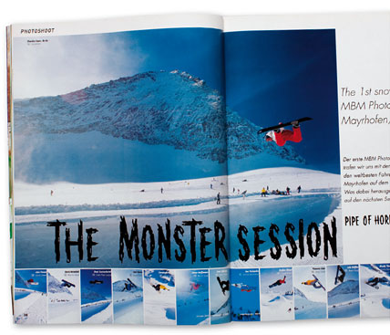 Die erste Monster Session fand 1999 auf dem Hintertuxer Gletscher statt. Die Idee war, dass die Fotografen ihre Archive vor Saisonbeginn schon einmal mit einer gehörigen Portion an guten Shots füllen könnten. Die Finger der Fotografen waren nach dieser Woche wund gescheuert, denn die versammelten Rider stellten in der Halfpipe einen Trick nach dem anderen vor die Linsen. Im April 2000 fand am Flumserberg in der Schweiz dann die erste Monster Session in der Art statt, wie ihr sie heute kennt. Der Grundgedanke der Session war und ist es bis heute geblieben, dass man eine Woche lang international anerkannte Fotografen und Snowboard-Pros versammelt, um sie das tun zu lassen, was sie am besten können und am liebsten tun: shredden und shooten. Fernab von jeglichen Contest-Zwängen steht hier der Spass an erster Stelle. Diese Idee kommt so gut an, dass die Monster Session in diesem Jahr in ihre zwölfte Runde geht und die Fotos der Woche meistens reichen, um ein Heft von A bis Z zu füllen.