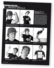 Es ist nun schon einige Jahre her, da hatte unser Chefredakteur die glorreiche Idee eines Bilderinterviews. Leider kam das „SZ-Magazin“ mit einer Rubrik namens „Ohne Worte“ dem MBM zuvor und so verharrte die Idee vorerst in der Schublade. Erst ein Jahr später, als Basti Gogl den damaligen stellvertretenden Chefredakteur des „SZ-Magazin“ im Hausflur traf, wurde das Thema wieder aktuell. Bei einem kurzen Schnack kam das Gespräch auf die oben erwähnte Rubrik. Gesenkten Hauptes gestand der Mann, dass die Idee auch nicht auf seinem Mist gewachsen wäre, sondern von einem Künstler entliehen war, der aus diesem Grundgedanken bereits in den 60er-Jahren ein ganzes Buch gestaltet hatte. Somit war das Thema des Plagiats vom Tisch, das Gewissen unseres Chefredakteurs wieder rein und „Sprachlos“ beschlossene Sache. Das MBM war um eine Rubrik reicher und seitdem haben sich zahlreiche Stars und Sternchen des Snowboardens ablichten lassen und Bilder statt vieler Worte für sich sprechen lassen.