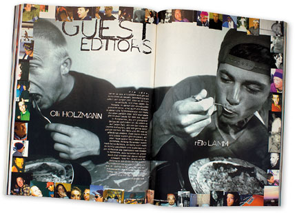 Gastautoren haben zwei Vorteile: Zum einen nehmen sie den hauseigenen Schreiberlingen die Arbeit ab (oder auch nicht), zum anderen bekommt der Leser Informationen aus erster Hand. Die Idee, Pros an den Redaktionsschreibtisch zu bekommen und sie eigene Ideen umsetzen lassen, waberte schon eine Zeit lang in den Köpfen der MBMler herum. Immer wieder wurde überlegt, wie sich solch ein Projekt am besten verwirklichen liesse. Problematisch an der Umsetzung der „Guest Editors“ war, dass die meisten Fahrer in der Zeit, in der die Ausgaben erschienen, in der Weltgeschichte unterwegs waren. Die Terminkalender der Pros im Winter lassen sich wohl am besten mit einem U-Bahn-Fahrplan in Tokio zur Rush Hour vergleichen; dementsprechend schwierig war es, die Verpflichtungen der Fahrer und einen Job als Guest Editor unter einen Hut zu bekommen. Nach einigem Hin und Her fand man schliesslich zwei Jungs, die sich auf das Abenteuer MBM einliessen: Oli Holzmann und Reto Lamm. Sie läuteten die glorreiche Ära der „Guest Editors“ ein. In ihre Fussstapfen traten Leute wie Marco Lutz, Babs Charlet und Todd Richards.