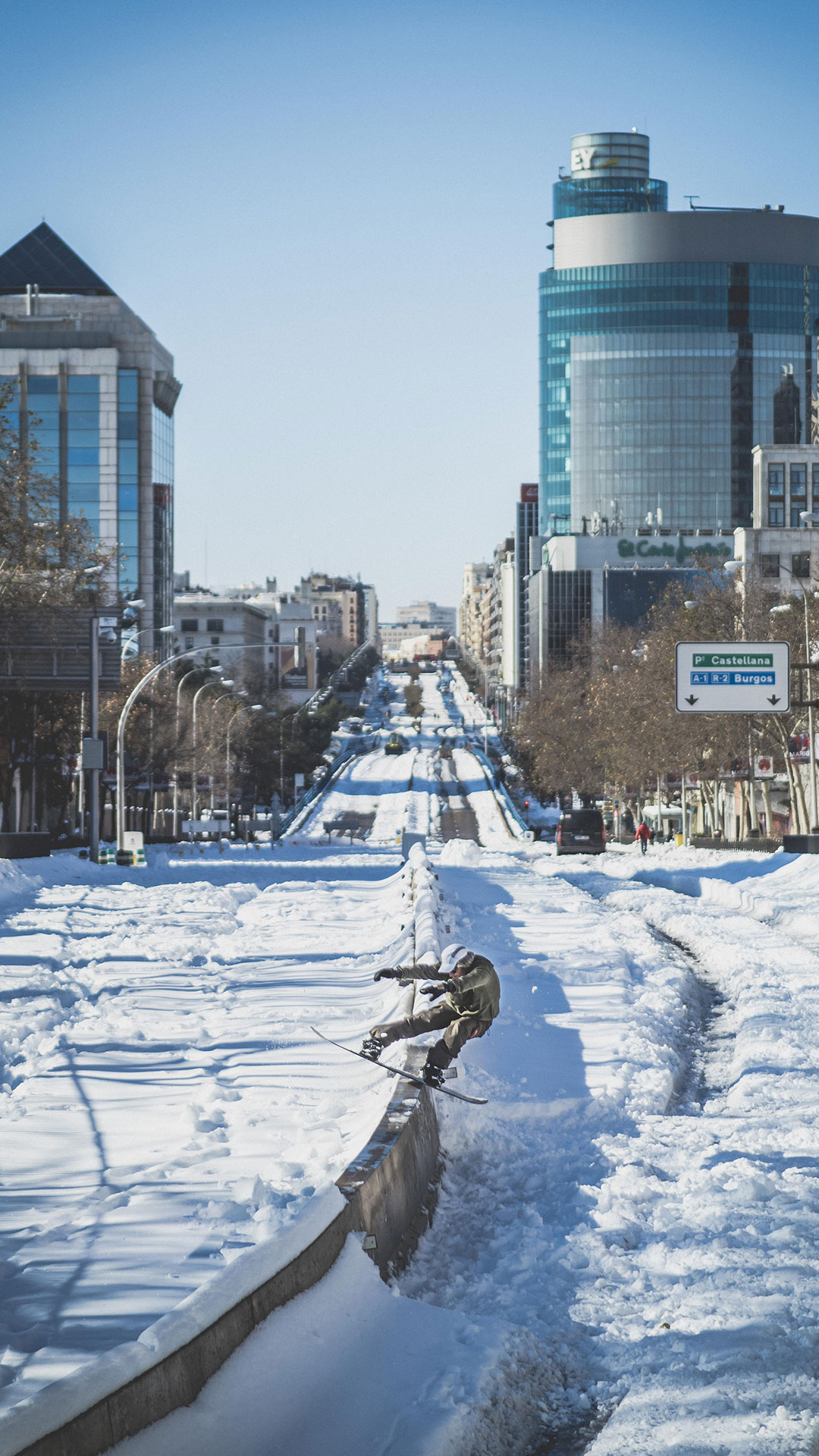 Jaime Castro: Es gab zwar in der Vergangenheit schon einige leichte Schneefälle, aber so viel Schnee hat es in Madrid seit mindestens 50 Jahren nicht gegeben. Nie zuvor konnten wir hier Streeten gehen und an diesen symbolträchtigen Spots fahren. Es war ein unvergessliches Erlebnis für mich.