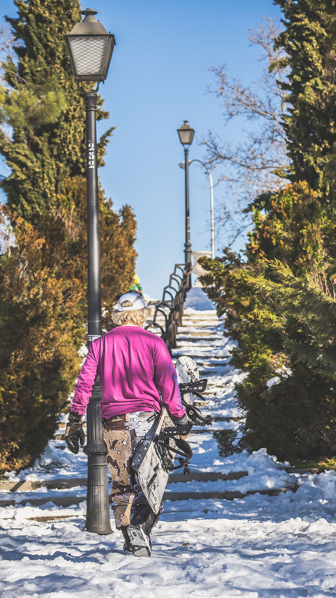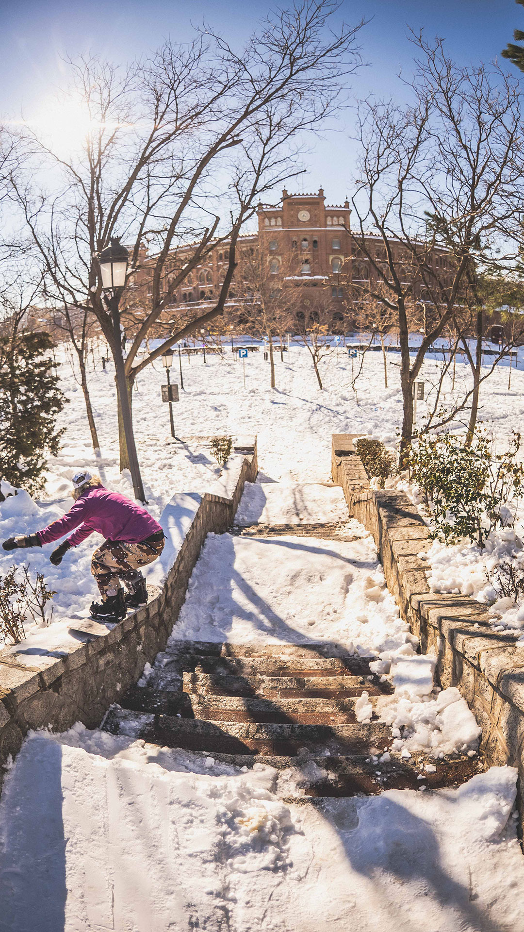Als wir merkten, wie viel Schnee in der Stadt fiel, sprach ich mich mit einem meiner Sponsoren, Surfin Sierra Nevada, darüber, nach Madrid zum Snowboarden zu fahren. Dank ihrer Unterstützung konnten @marmophoto und ich direkt in die Stadt fahren. Die beste Entscheidung aller Zeiten.