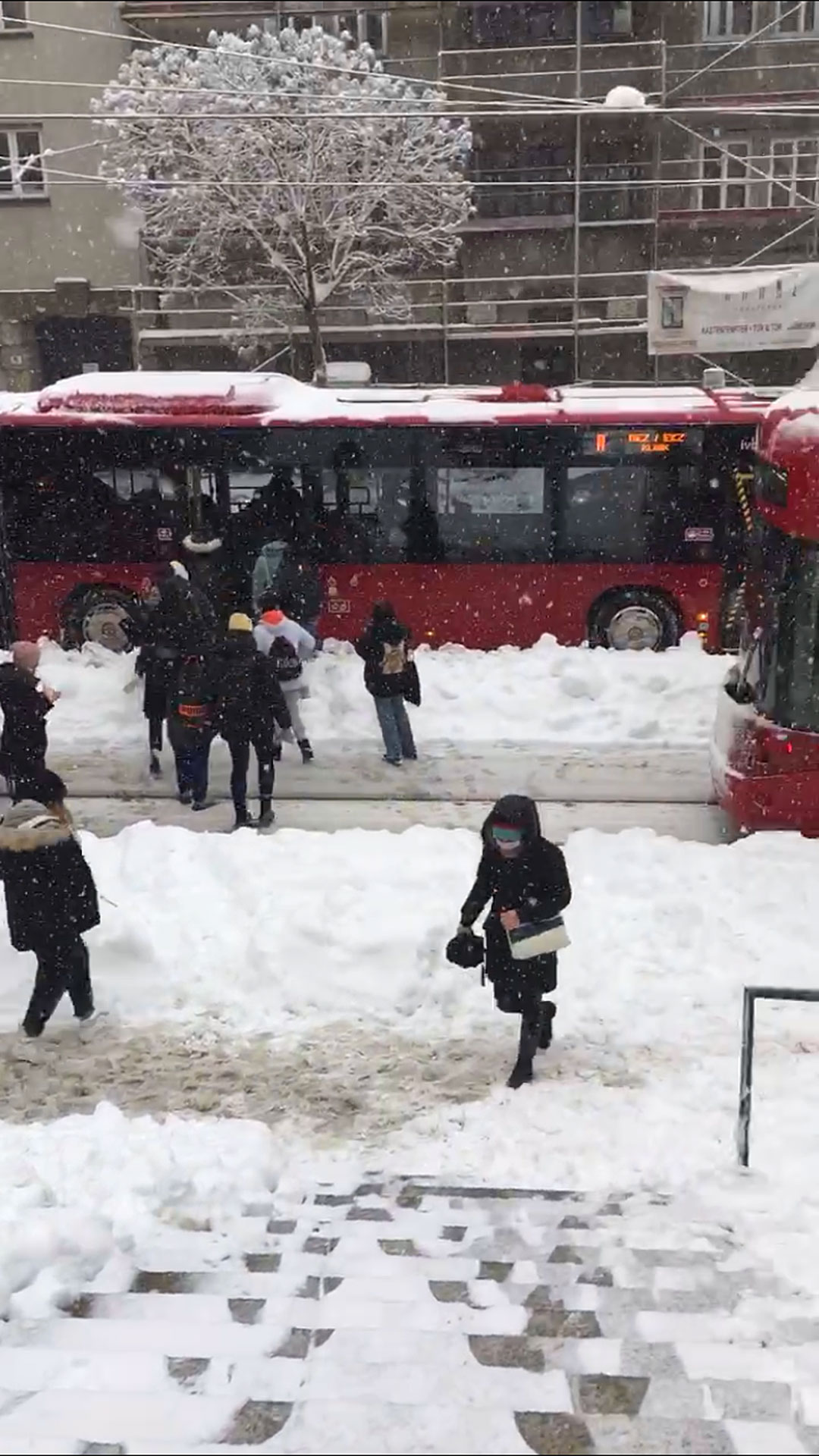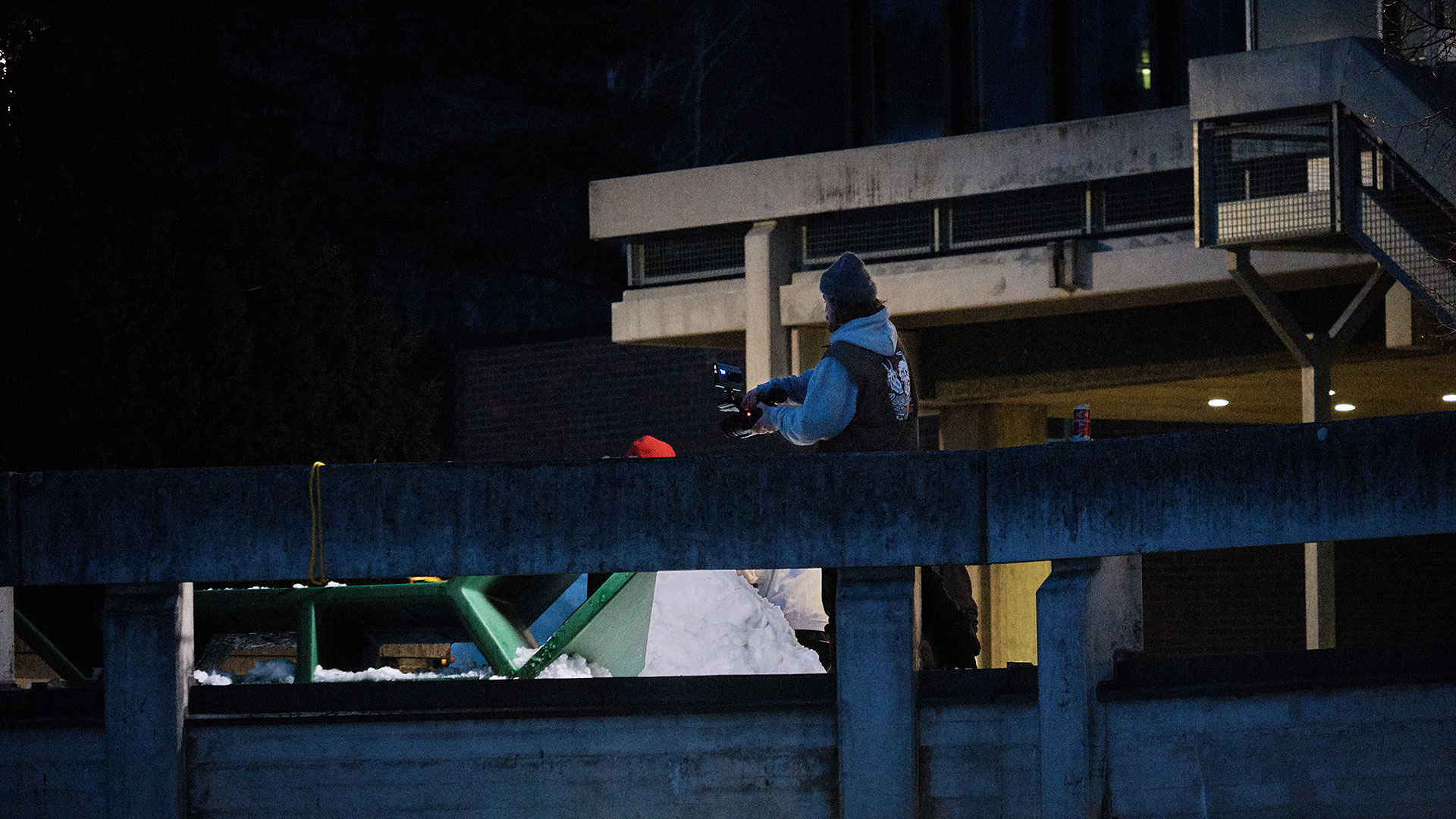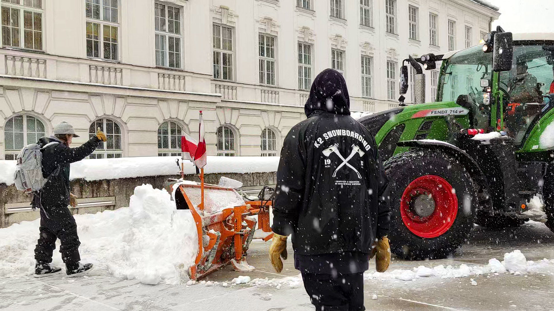 An einem anderen Spot konnte direkt im Outrun eine Trambahn wegen der Schneemassen nicht mehr weiterfahren und verursachte so einen Tramstau von mindestens 12 Zügen. Man kann sich vorstellen, wie es da dann zu ging! Ganze Menschenmengen mussten aussteigen und im Schnee draußen warten. Für uns aber ging die Session so erst richtig los. Viele wartende Passanten schauten sprachlos, als Ozzy seinen Frontboard Pretzel durch zwei stehende Trambahnen ausfuhr. Selbst die Tramfahrer haben gejubelt – es war insane!