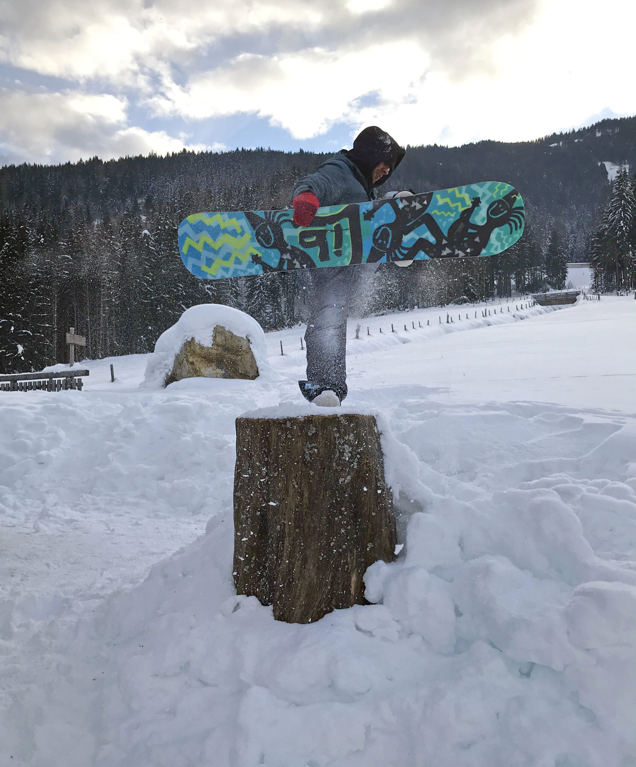 Man kann seine eigene Kreativität hinsichtlich Feature-Auswahl sowie der Lines voll ausleben. Außerdem ist es kostenlos das heißt, der Kauf einer teuren Tageskarte entfällt komplett. Bei so einem Projekt entsteht über kurz oder lang immer eine Community, welche sich gegenseitig “pusht”. Ein weiterer Vorteil ist, dass wenn es am Berg eisig oder windig ist, oder man einfach nur mal einen neuen Trick für einen Street-Spot trainieren will, ist ein DYI-Snowpark die perfekte Alternative. Es gibt zwar (noch) keinen eigenen Lift, aber dadurch spart man sich durch das Hiken das Fitness-Studio.