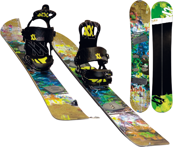 Für Abfahrten auf unberührten Hängen und kraftschonende Aufstiege ist das brandneue „Cashew Split Kit“ die ideale Wahl! Werkzeugloses Teilen auf zwei Tourenski ist dank dem Voilé-Bindungssystem kein Problem. Das einfache Einhängen der Felle mit dem Skin Pin System hält zuverlässig beim Aufstieg und ist kinderleicht zu handhaben. Durch die qualitativ hochwertige Konstruktion mit Carbon und Hartholz im Mittelbereich gibt es bei der Abfahrt keine Einschränkungen in der Performance im Vergleich zu dem beliebten Powder Freestlye Board „Cashew“! Das so sparsam wie möglich verwendete Harz, ein Topsheet aus Hanf/Leinen sowie die Verwendung überwiegend recycleter Materialen schonen zudem die Umwelt!