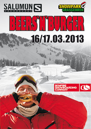 Snowpark Grasgehren lädt zusammen mit Salomon Snowboards und Bonfire Snow- boarding zur dritten Serie der Beers’N’Burger Session am 10. Februar 2012 ein. Für die Session...