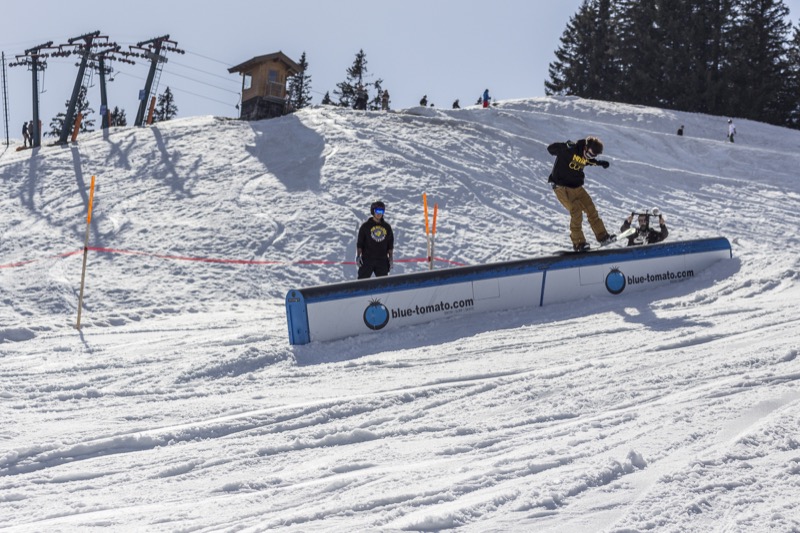 Freestyle-Szene gedenkt ehemaligem Snowpark Grasgehren mit guter Laune und Snowboard-Action vom Feinsten.