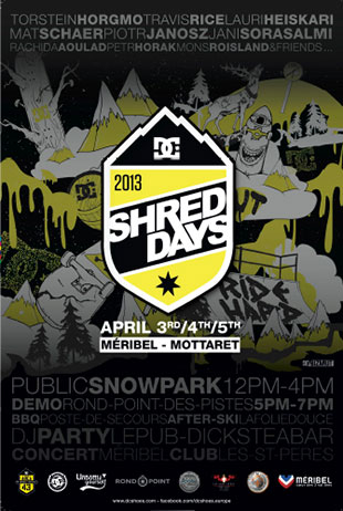 Die dritte Ausgabe der legendären “DC Shred Days” findet vom 3. – 5. April 2013 im DC AREA 43 Snowpark in Meribel statt. Der DC AREA...