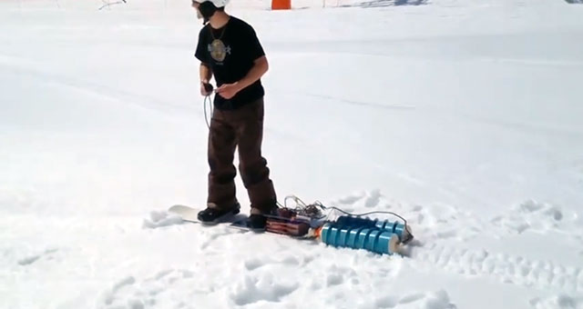 Nie wieder auf dem Ziehweg abschnallen – das verspricht dieses motorisierte Snowboard, das von ein paar französischen Schülern entwickelt wurde. Durchsetzen wird sich diese Erfindung...