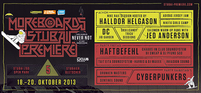 Die Vorbereitungen für das Snowpark-Opening MOREBOARDS Stubai Premiere vom 18. bis 20. Oktober 2013 auf dem Stubaier Gletscher, Österreich, laufen derzeit auf Hochtouren. Ein großes,...
