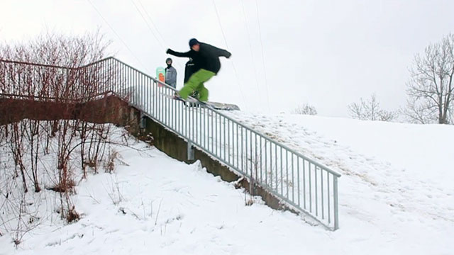 http://mpora.com/videos/5NRh6mURH Der Innsbrucker Tobi Hartmuth sammelt ein paar gute Jungs vom Allgäuer Straßenrand auf und macht sich mit der Meute auf nach Big Bear. Kotbrats...
