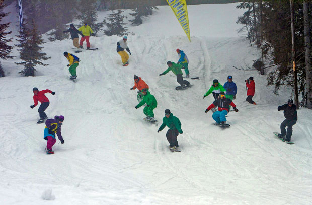 Ein guter Snowboarder holt auch aus einer unspektakulären Piste jede Menge Spass heraus. Wie das, zeigt Markus «Mä» Keller den jungen Teilnehmern von Red Bull...