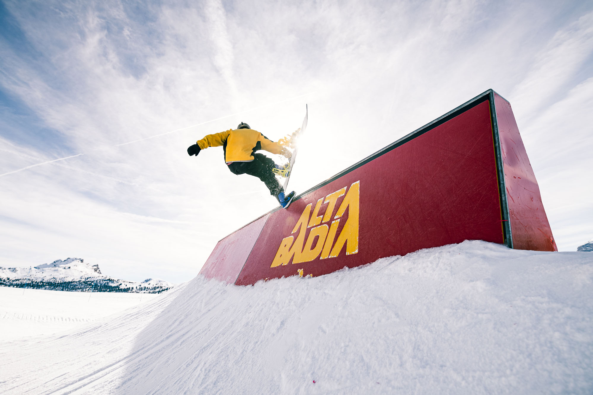 In den Südtiroler Dolomiten trifft im Skigebiet Alta Badia Dolce Vita auf Freestyle