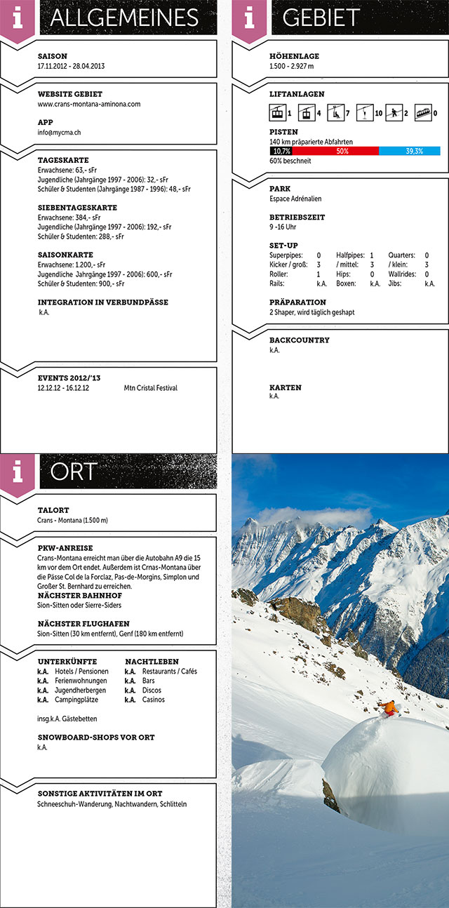 Sonnenanbetende Shredder haben ein neues Reiseziel: Das auf einem 1.500 Meter hohen Plateau gelegene Crans-Montana ist ein Spielplatz mit hohem Goggletan-Faktor. Gletscher, Park und Freeriding in vollkommener südlicher Exposition sorgen dafür, dass einem nicht nur beim Shredden warm ums Herz wird.