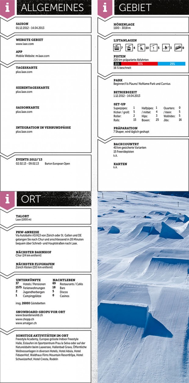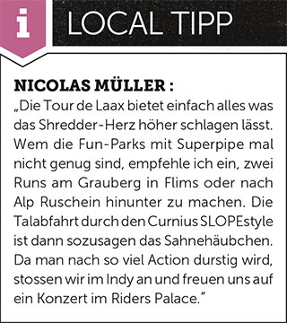 „Heaven is a Halfpipe“ – Wäre Gott Snowboarder und hätte er sich einen Ridersheaven designed, würde dieser höchstwahrscheinlich LAAX heißen. Bei einem Besuch im Graubündner Freestyle-Mekka mit seinen mehr als 200 Pistenkilometern, 43 Kilometern gekennzeichneten Freeride-Routen, vier Terrain-Parks, der europäischen „Mutter aller Superpipes“, einer kompletten Freestyle-Piste, der Freestyle-Academy und den Unterkunfts- und Partymöglichkeiten im Ort, wird sich jeder Shredder wie auf Wolke Sieben fühlen.