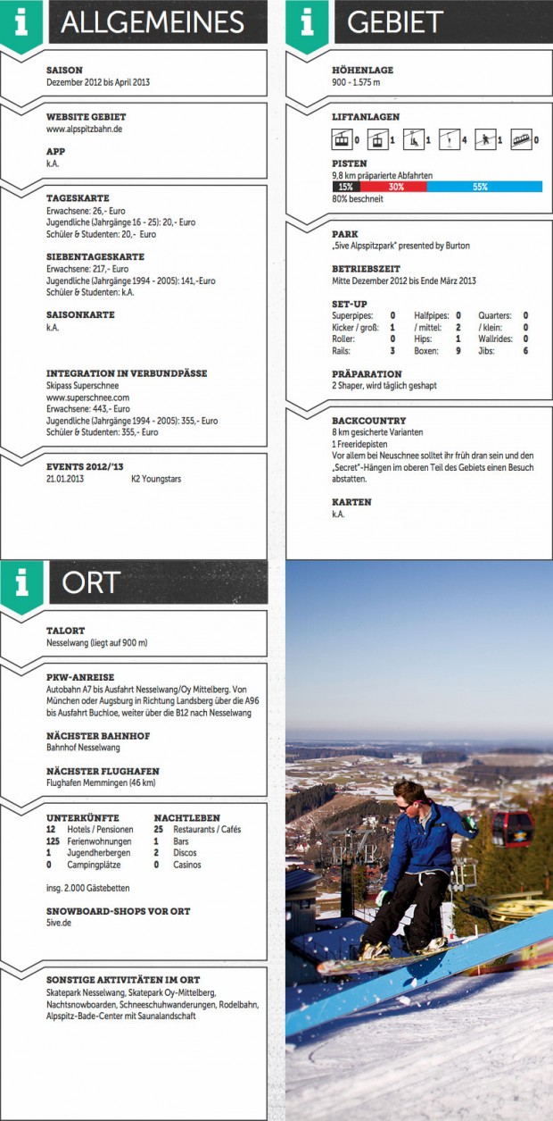 Das Allgäu – unendliche Weiten. Wir schreiben die Saison 2012/2013. Dies ist das Wintersportgebiet Nesselwang, wo dank einer engagierten Shapecrew seit geraumer Zeit ein ordentlicher Park zu finden ist. Viele Kilometer vom Alpenhauptkamm entfernt, bringen die Allgäuer Obstacles an den Berg, die nie ein Mensch zuvor im Alpenvorland gefahren ist.