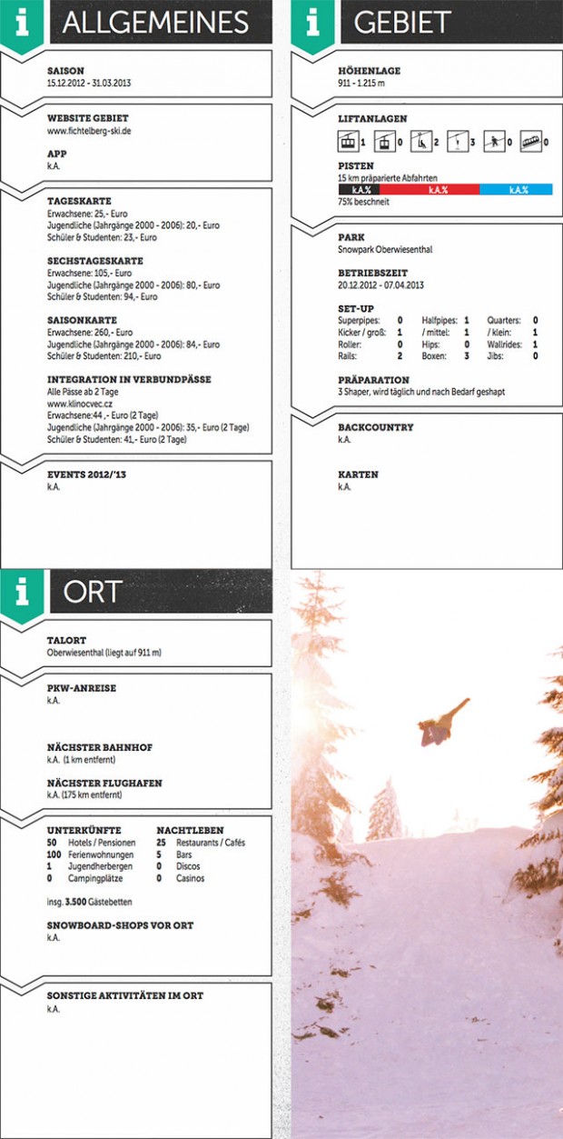 Oberwiesenthal ist eine Anomalie – es weicht vollkommen davon ab, was man mit einem Mittelgebirgswintersportgebiet verbindet. Denn neben Kickern und Jibs gibt es hier sogar eine Halfpipe. Außerdem bietet der Fichtelberg mit seinen 1.215 Metern abseits der Pisten und mit seinen Treeruns ähnlich viel Unterhaltung wie manch großer Bruder in den Alpen.