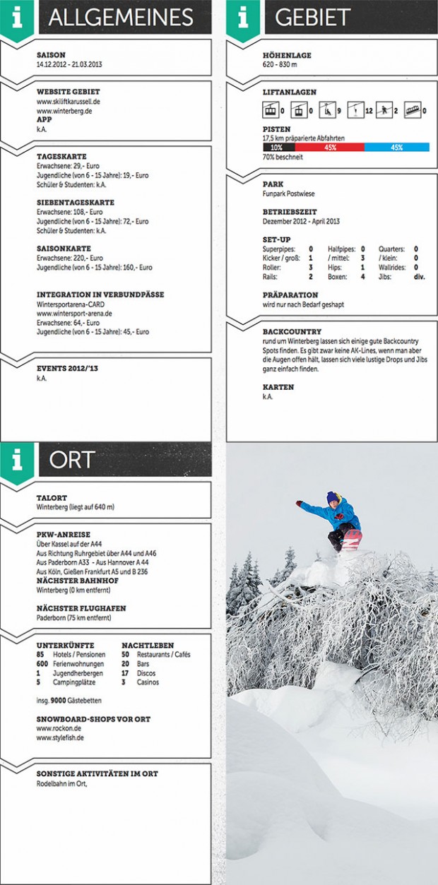 Bei „Sauerland, mein Herz schlägt für das Sauerland“, einem Schlagerlied, wechselt man lieber schnell den Radiosender. Dies könnte sich schlagartig ändern, wenn man einmal einen Blick über den Tellerrand der Alpen hinauswirft und der Mittelgebirgsregion im Süden Westfalens einen Besuch abstattet. Besonders die Wintersport-Arena Sauerland bei Winterberg wird bei Snowboadern, die in der Mitte Deutschlands wohnen und nicht mal kurz einen Snowboard-Trip in die Alpen machen können, die Sehnsucht nach Freestyle- und Jib- Möglichkeiten in ihrer Nähe mehr als gebührend stillen.