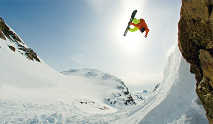Zum letzten Mal auf die Toilette, das letzte Mal Körperhygiene, ein letztes Mal frisches Essen, dann brechen wir mit den Hundeschlitten auf. Die Sonne scheint, doch wir können die herrliche Landschaft während der ersten halben Stunde auf unserer Schlitten kaum geniessen. Als sich die Hunde in Bewegung setzen, geschieht dies auch mit ihren Mägen. So spritzt uns nicht nur der flockig aufgewirbelte Schnee entgegen, sondern die ausgestossenen Sekrete der arbeitenden Hunde fliegen uns ebenfalls um die Ohren. Nach ungezählten Ausweichmanövern vor den stinkenden Geschossen geht den Hunden zum Glück langsam die Munition aus. Endlich können wir auf den Schlitten entspannen und die siebenstündige Fahrt nach Tiniteqilaaq, einem kleinen Jägerdorf westlich von Tasiilaq, geniessen. Links und rechts von uns erheben sich wunderschöne Fels- und Bergformationen. Hier eine Line, dort eine Kicker-Landung – wir sitzen auf unseren Schlitten wie kleine Kinder im Einkaufswagen, die am Süssigkeitenregal vorbeigeschoben werden, aber nur gucken und nicht anfassen dürfen. Wir haben keine Zeit zum Anhalten und Session-Fahren, denn wir müssen vor Einbruch der Dunkelheit unser Ziel erreichen.