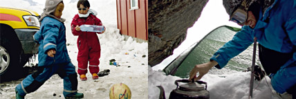 Bevor wir zu unserer ersten Snowboard-Mission aufbrechen, noch eine kurze Geschichte, die uns gewisse Umstände nach unserer Ankunft erklärte. Auch wenn die ersten Wikinger schon 982 nach Christus Grönland erreichten, blieben durch die unwirtlichen Lebensbedingungen viele Regionen lange Zeit von der fortschrittlichen Aussenwelt abgeschnitten. So verwundert es nicht, dass bis vor einem halben Jahrhundert die Bewohner abgelegener Dörfer noch nie Weisse gesehen hatten.