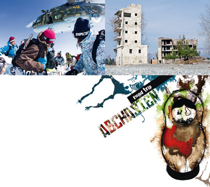 Aufgrund der fehlenden Bildung und Kultur ist es ein Leichtes für Regierungen, die Menschen in Abchasien zu beeinflussen. Nachts fuhren wir zurück zum Hotel. Das Wetter besserte sich. Unser Heli wurde von einer Militärstation inklusive abchasischem Offizier, der das Luftkommando des Kaukasus zu Sowjetzeiten an führte, eingeflogen. Es herrschte Windstille. Die Abendsonne färbte die Berggipfel rot und liess sie im Schwarzen Meer reflektieren. Ganz ehrlich, es konnte nicht besser werden. Der folgende Morgen verlief etwas chaotisch. Gegen neun Uhr schafften wir es endlich, aus dem Hotel Richtung Abflugplatz aufzubrechen, wo der riesige MI-8 bereitstand. Wir flogen über gigantische Gipfel und Bergketten hinweg, bis uns die riesige Hummel auf einem Grat absetzte. Wir checkten die Oberfläche auf dem Südhang und waren uns einig, dass die Wärme und die Sonne den Schnee zu unsicher und riskant machten. Das bedeutete ein Katz-und-Maus-Spiel mit Licht und Schatten auf unserem Run nach unten. In den höheren Lagen war der Schnee tiefster Powder, je tiefer wir kamen, desto fester wurde er. Nach einigen gelungenen Aufnahmen suchten wir nach Spots für den nächsten Tag. Neben den eigenartigen Schneeverhältnissen beunruhigten uns die Fähigkeiten unseres Piloten am meisten: Er benötigte oft mehrere Anläufe, um uns teilweise absetzen zu können, einmal wurden wir sogar auf einer überhängenden Wechte ausgesetzt, die er anschliessend beinahe mit dem Heli-Hinterteil rammte! Als wir mit fetten Smiles in den Gesichtern ins Hotel zurückkehrten, scharten sich viele Menschen um uns. Verunsichert winkten wir ihnen zu und sie lachten uns an. Was dachten die bloss von uns? Verrückte Klamotten, Heli-Service und Snowboards gehören wohl nicht gerade zum Alltagsbild in Abchasien.