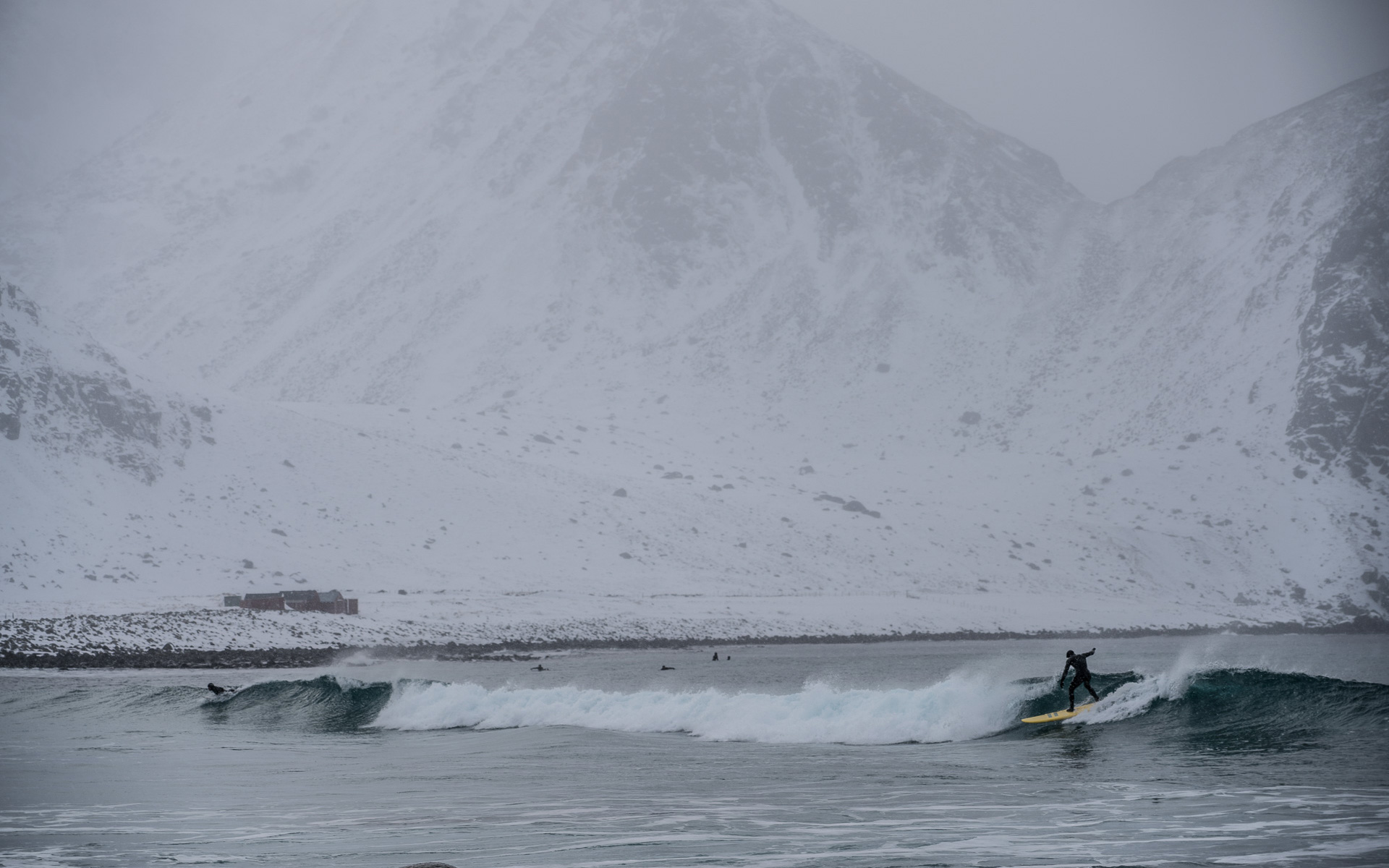Als wir in einem Schneesturm surfen waren! In dieser Landschaft im Wasser zu sein und zu wissen, dass man sich mitten am Polarkreis befindet, ist einfach unbezahlbar.