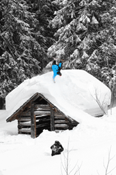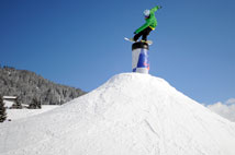 Nichts desto trotz ging es etwas verspätet mit dem ersten Programmpunkt, der Backcountry-Session, los. Es wurden zwei Teams gebildet, die mit Filmern und Photographen ausgestattet waren und ins berühmte Damülser Hinterland geschickt wurden um feinste Clips und Bilder zu produzieren. Gleichzeitig durfte die Shapecrew die angewachsene Neuschneemenge von 60 cm aus dem Park befördern. Ein harter Job der im Laufe des Tages zur Sisyphos-Arbeit wurde, denn es schneite weiterhin Vollgas aus allen Löchern.