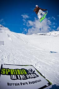 Vom 04.-19.April 2009 gibt es eine neue Auflage des bewährten SPRING IN THE PARK auf der Zugspitze. Der Terrain Park wird in dieser Zeit von Headshaper Karl Killer täglich gepflegt und für alle möglichen Aktivitäten zur Verfügung stehen: Nachhilfe in Sachen Freestyle von den Pros – u.a. die K2-Profis Andreas „Mone“ Monsberger(AUT) & Colin Frei (SUI) – in der ersten Woche extra Girls Coaching vom K2 Women Alliance Team, Materialtests, Photoshootings und am 18.April der „Win the Full Pro Package“-Contest! Als Supervisor wird Xaver Hoffmann vor Ort sein um nach dem Rechten zu sehen!