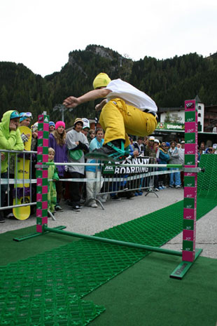 Am Samstag geht’s dann um Alles. Die unglaubliche Höhe von 100 cm wurde bereits in der Hauptrunde auf den Dryslopes geknackt, doch jetzt werden die Karten neu gemischt und die Finalisten battlen sich im KO.-Verfahren auf echtem Schnee! Mal sehen, wer nach einer Saison noch den Pop in den Beinen hat, um den Big Prize abzugreifen. Es geht um nichts Geringeres als einen kompletten Trip in die USA zum High Cascade Summer Camp am Mt.Hood!