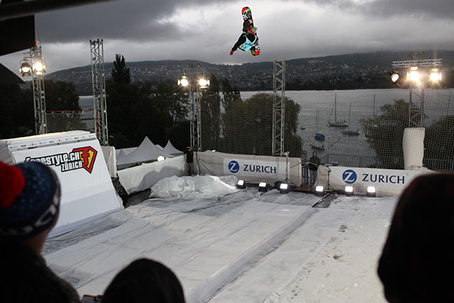Publikumsliebling des heutigen Abends war ganz klar der Schweizer Pat Burgener. Mit einem Backside Double Cork 10 und Backflip No Grab hatte er die Zuschauer klar auf seiner Seite. Am Ende hieß es für ihn Platz 2.